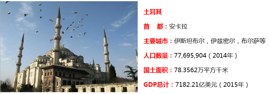 土耳其地理位置:位于亞洲最西部,橫跨歐、亞兩大洲。與亞歐8個(gè)國(guó)家相鄰,東有格魯吉亞、亞美尼亞、阿塞拜疆、伊朗;東南有伊拉克、敘利亞;西有保加利亞、希臘。