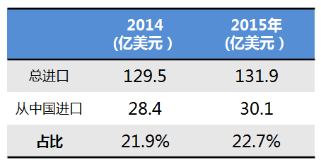 2015年中土雙邊貿(mào)易額為272.4億美元。其中,土耳其對(duì)中國(guó)出口24.1億美元,下降15.6%,土耳其自中國(guó)進(jìn)口248.2億美元,下降0.2%。土方逆差224.1億美元,中國(guó)為土第一大進(jìn)口來源地和最大貿(mào)易逆差來源國(guó)。