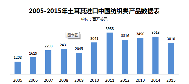 中國(guó)是土耳其紡織服裝進(jìn)口主要來源國(guó),占其總進(jìn)口量約1/5。近幾年來,土耳其進(jìn)口中國(guó)紡織服裝數(shù)額平穩(wěn)上升。
