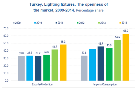 土耳其LED照明燈具市場(chǎng)的開放性在過去幾年里大大增加。2014年,LED銷售額增加6.4%,并且進(jìn)口額在近兩年呈現(xiàn)雙位數(shù)的增長(zhǎng)。土耳其LED市場(chǎng)不斷擴(kuò)大,平均每年增長(zhǎng)10%,以LED為基礎(chǔ)的產(chǎn)品預(yù)計(jì)將在未來幾年繼續(xù)擴(kuò)大。據(jù)CSIL預(yù)測(cè)的數(shù)據(jù)顯示,2018年,土耳其LED市場(chǎng)將達(dá)到38%。
