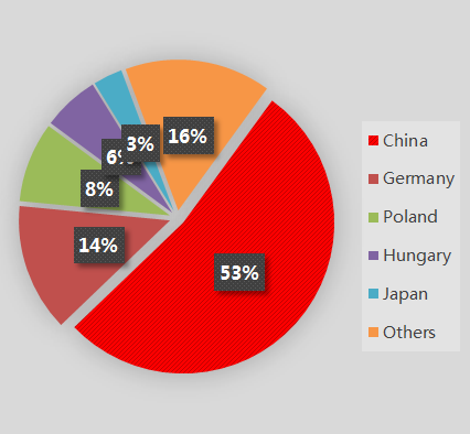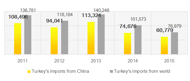 2015年中國(guó)商用燈具產(chǎn)品出口土耳其,占比53%,成為此類產(chǎn)品的第一來源國(guó)。