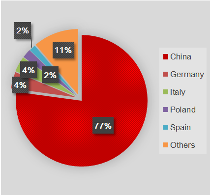 2015年中國(guó)民用燈具產(chǎn)品出口土耳其,占比77%,成為此類產(chǎn)品的第一來源國(guó)。