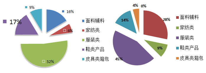 2015年中國(guó)向波蘭出口的113.30億美元的紡織服裝類產(chǎn)品中,面料輔料類產(chǎn)品占5.34億,家紡類產(chǎn)品占2.07億,服裝類產(chǎn)品占17.01億,鞋類產(chǎn)品占5.37億,皮具類箱包占2.81億,可以看出中國(guó)向波蘭出口的產(chǎn)品還是以服裝類為主。