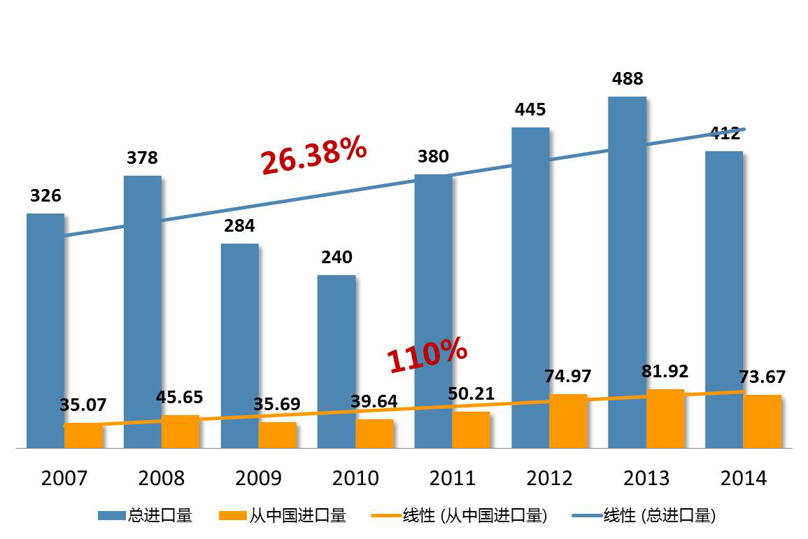哈薩克斯坦自然資源豐富,擁有可以消耗65年的石油儲(chǔ)備,可以維持308年的碳儲(chǔ)量,并且采礦業(yè)盛行。過度依賴資源出口導(dǎo)致國內(nèi)物資匱乏.此外哈薩克斯坦還是一個(gè)內(nèi)陸國家,沒有非常發(fā)達(dá)的國際物流系統(tǒng),所以長期以來,對(duì)于鄰國中國的進(jìn)口依賴日益增長。