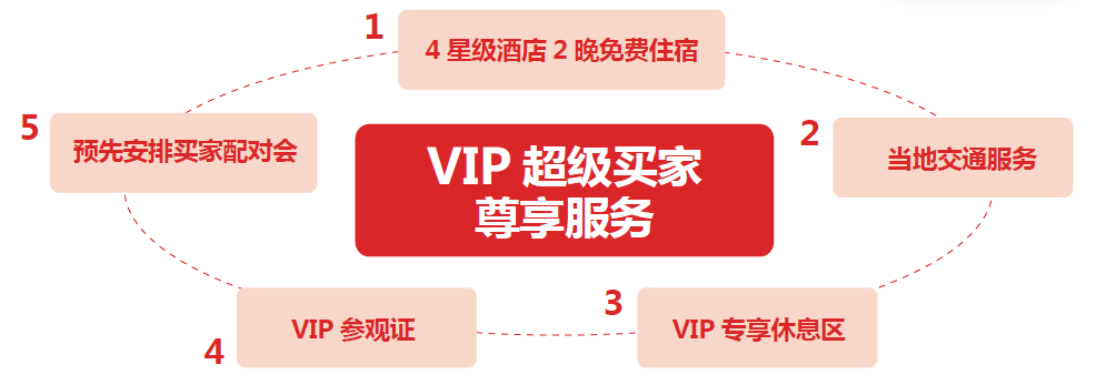 通過VIP 資格審核的專業(yè)買家可享有住宿、交通等多項(xiàng)服務(wù),進(jìn)一步確保大宗買家、異地買家到會(huì)采購,提升展商的現(xiàn)場(chǎng)貿(mào)易成交額。