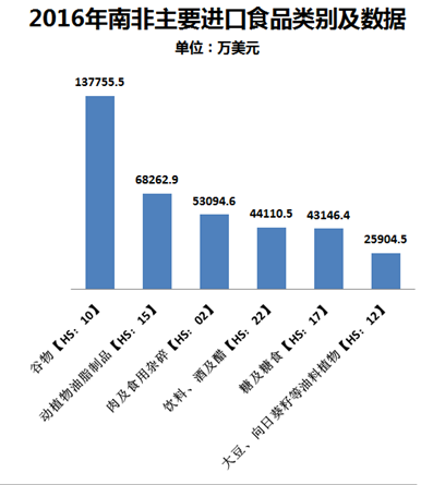 谷物是南非最主要的進口食品,2016年進口額達到13.78億美元。糧食谷物除了作為當(dāng)?shù)鼐用竦闹魇惩猓€會有相當(dāng)一部分被加工成為食用粉及粉制品(面粉、淀粉等,以及面食、面包等成品)。