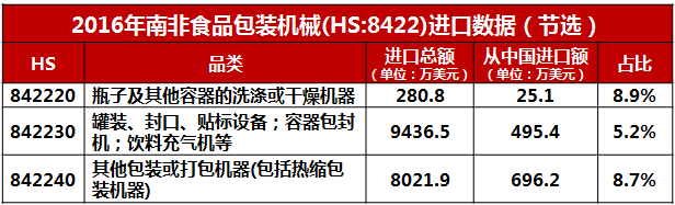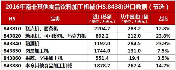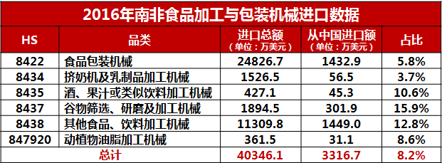 南非食品機械進口情況