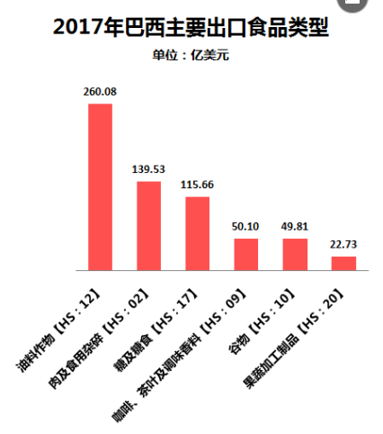 此外,巴西人偏好甜食,對(duì)含糖食品的需求較大。同時(shí),作為甘蔗種植大國(guó),巴西的榨糖行業(yè)非常發(fā)達(dá),每年都會(huì)生產(chǎn)大量的食用糖,2017年的出口額高達(dá)115.66億美元。