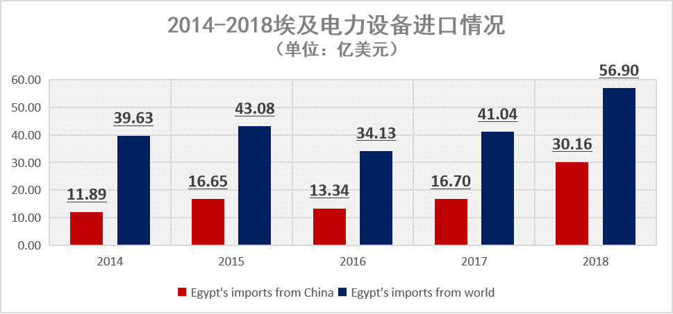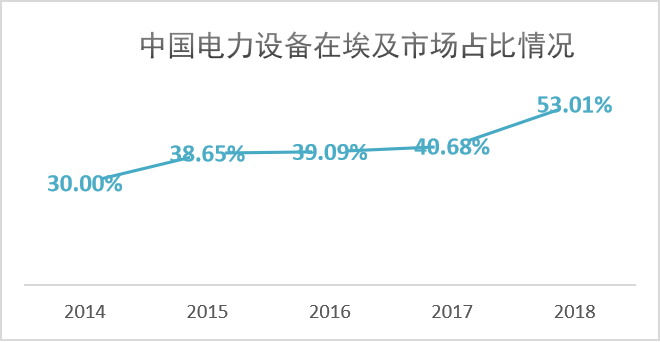 2018年中國電力設(shè)備在埃及市場占比創(chuàng)5年來的新高,占比達(dá)53.01%,較2014年增長了70.7%。目前中國已成為埃及主要電力設(shè)備的第一進(jìn)口來源國。中國電力產(chǎn)品在價格和功能上也更適應(yīng)埃及目前的國情。