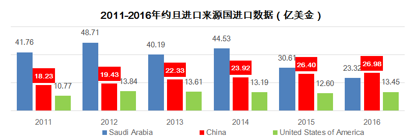 據(jù)約旦國家統(tǒng)計局數(shù)字,2016年約旦總進口額為192.61億美元,同比下降了5.92%;