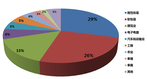 4、包裝行業(yè)是南非塑料主要的應(yīng)用市場,占比達到55%,其實是建筑業(yè)(15%)。