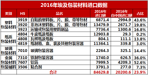 1、埃及印刷包裝業(yè)的產(chǎn)能只能滿足國內(nèi)30%的市場需求,每年仍要進(jìn)口大量的包裝材料。以紙制包裝為例,據(jù)埃及造紙學(xué)會統(tǒng)計,目前埃及國內(nèi)的產(chǎn)量僅能維持22%的需求,78%的紙張仍依賴進(jìn)口。而2016年埃及主要包裝材料(紙張、塑料、金屬和玻璃)的進(jìn)口額高達(dá)8.46億美元。