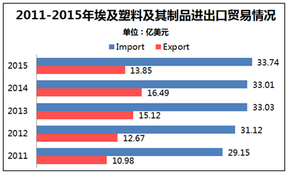 1、埃及是一個塑料消費大國,人均塑料消費已達(dá)到25kg。巨大的市場需求使埃及每年都要進(jìn)口大量的塑料成品,自2012年以來的進(jìn)口規(guī)模便一直保持在30億美元以上。